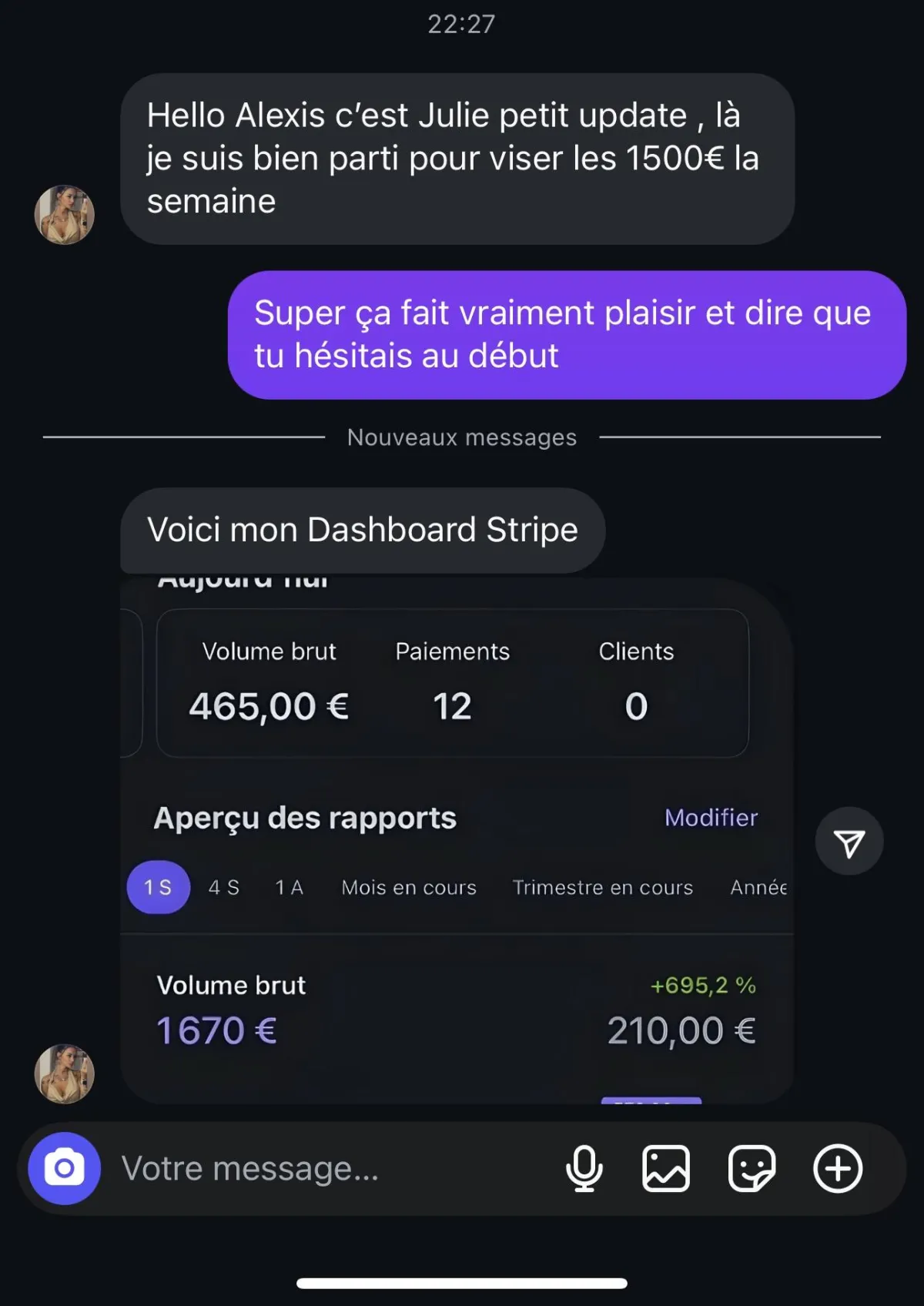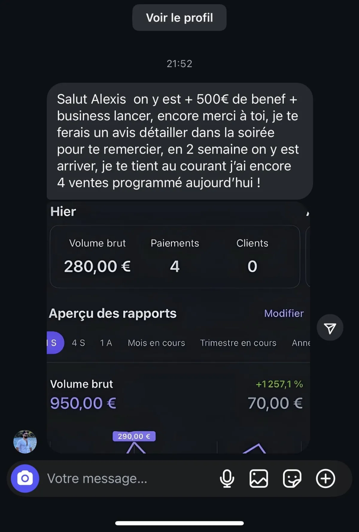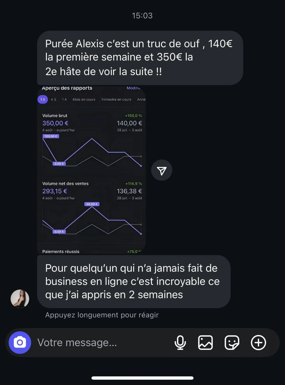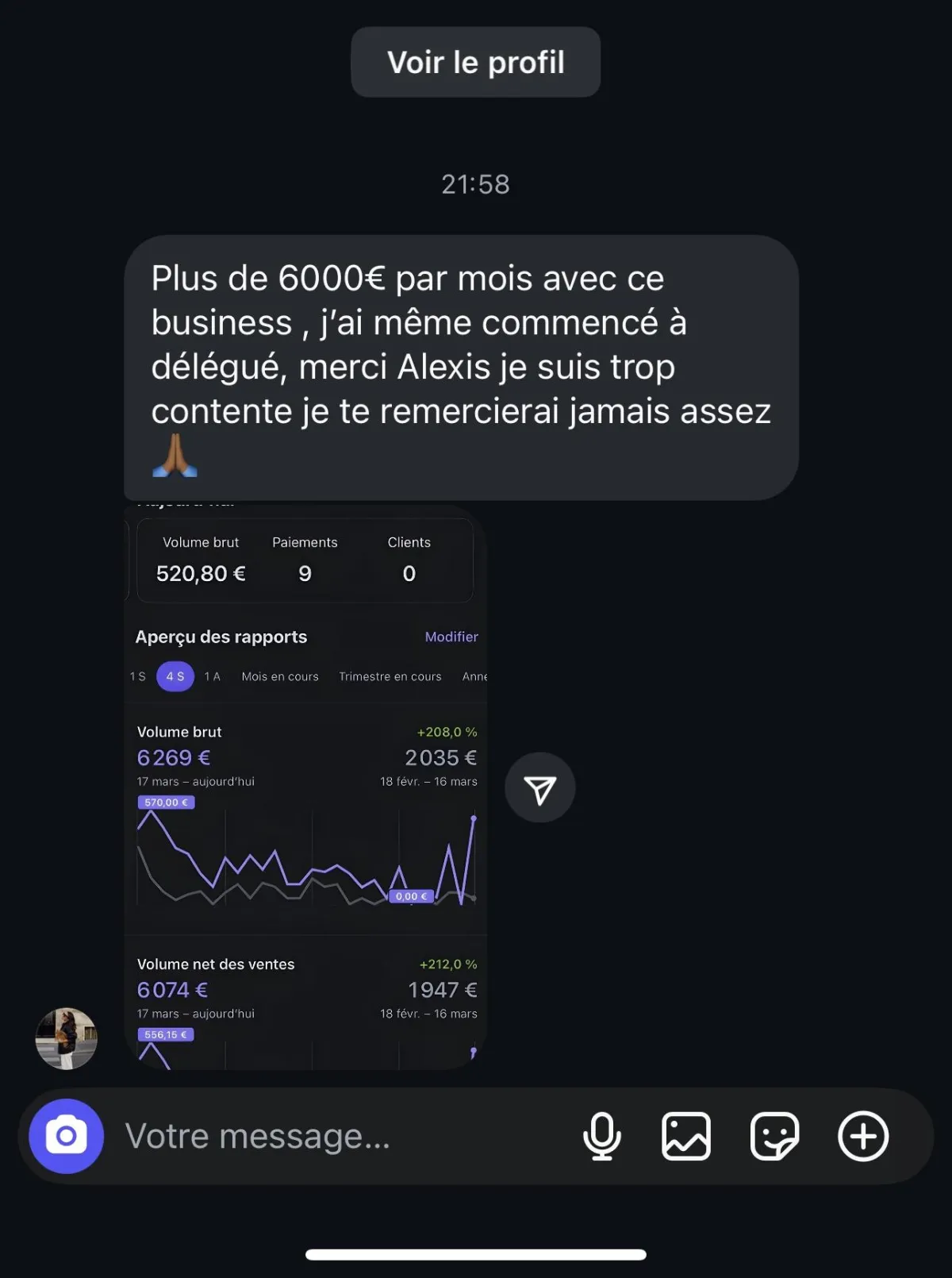 Il hésitait au début, il ne croyait pas au business en ligne, jusqu'à ce qu'il fasse des semaines à 1500€ qui était son salaire en restauration , aujourd'hui il vit en malaisie de son business