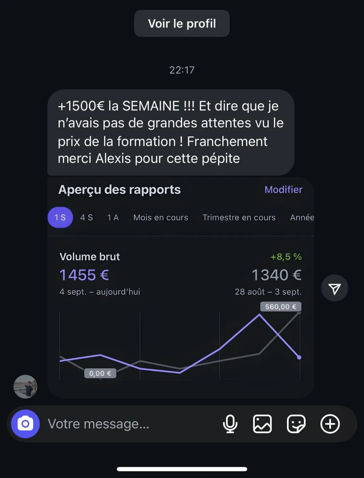 Tu auras l'occasion d'échanger avec des entrepreneurs qui ont généré des millions d'euros avec ce business